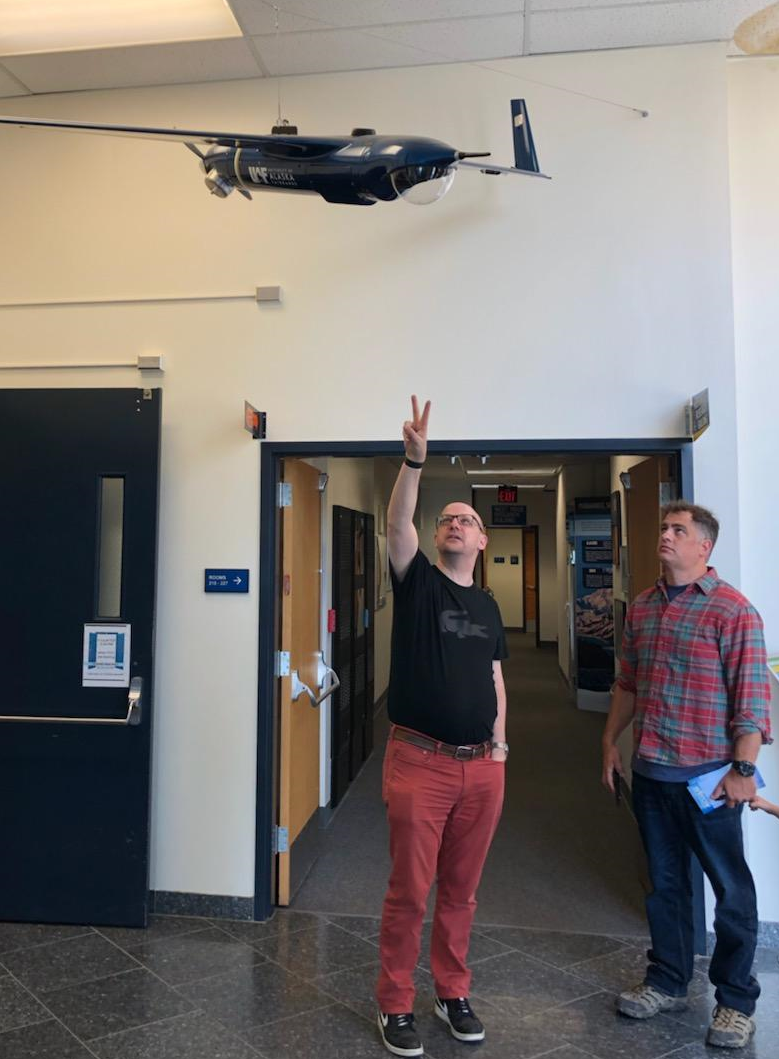 Quite the background. Fortunately, Sky Horse Tech was able to visit the UAF/GI campus to get a sense of their past and future UAS operations. We met with Dr. Peter Webley, Associate Director of Research at ACUASI, who spoke with us and provided a tour around the Geophysical Institute. When driving up to the GI campus it resembles a small NASA facility. There are enormous satellite dishes on top of buildings and among the campus grounds.