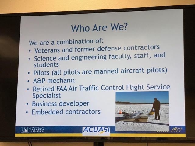 In 2012, UAF created the Alaska Center for Unmanned Aircraft Systems Integration (ACUASI)after realizing the potential uses of UAS. Per the ACUASI website: